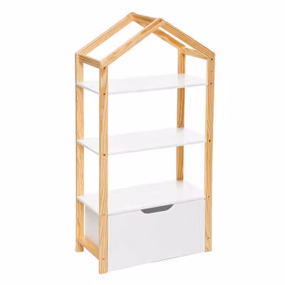 Praktisk och vacker vit/natur hushylla konstruerat med tre hyllplan och rymlig förvaringslåda där du och ditt barn kan placera alla sina saker. Eller varför inte sätta favoritgossedjuret på bästa plats?