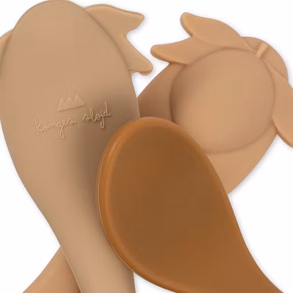 Et meget sødt sæt af 3 silikoneskeer med ergonomiske håndtag til små hænder med store ambitioner fra det kendte danske mærke Konges Sløjd.