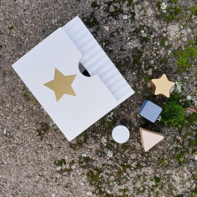 Designet gør, at den med garanti passer ind i dine andre børneværelsesindretninger. Dit barn vil udvikle deres kreativitet og deres sans for former og farver, mens de leger med denne pick box. Der medfølger 4 blokke til at sætte i, og plukkeboksen anbefales til børn, der er omkring 18 måneder og ældre.