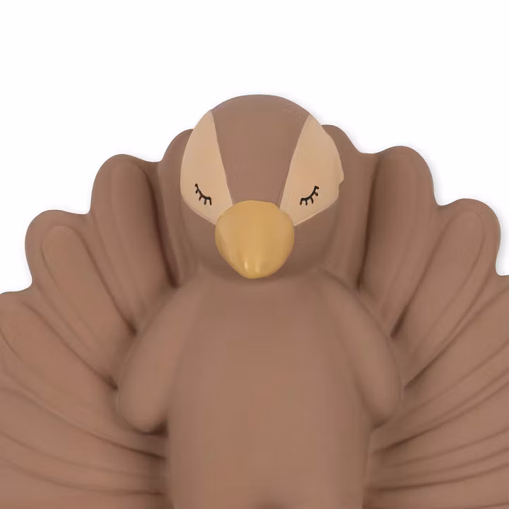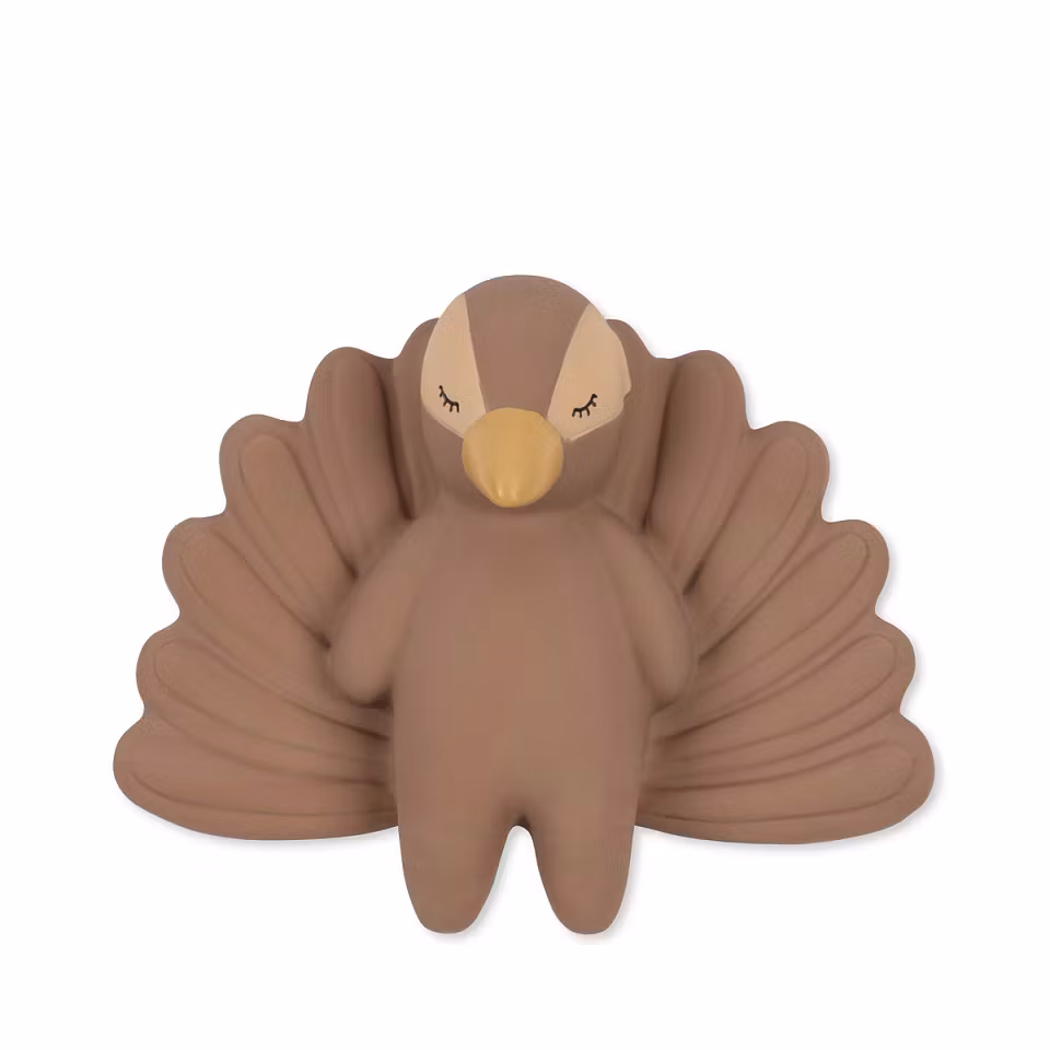 Gummilegetøjet er håndmalet med fødevaregodkendt maling. Tør forsigtigt af med en fugtig klud.