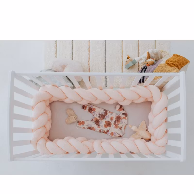 Mål: 350 cm x 25 cm. Til at passe rundt om en tremmeseng i normal størrelse