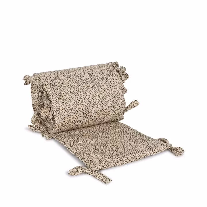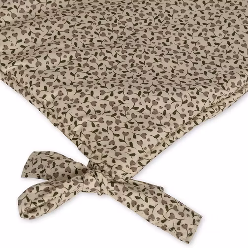 Betrækket er fastgjort med søde sildebensstropper og er velegnet til vugger og tremmesenge.