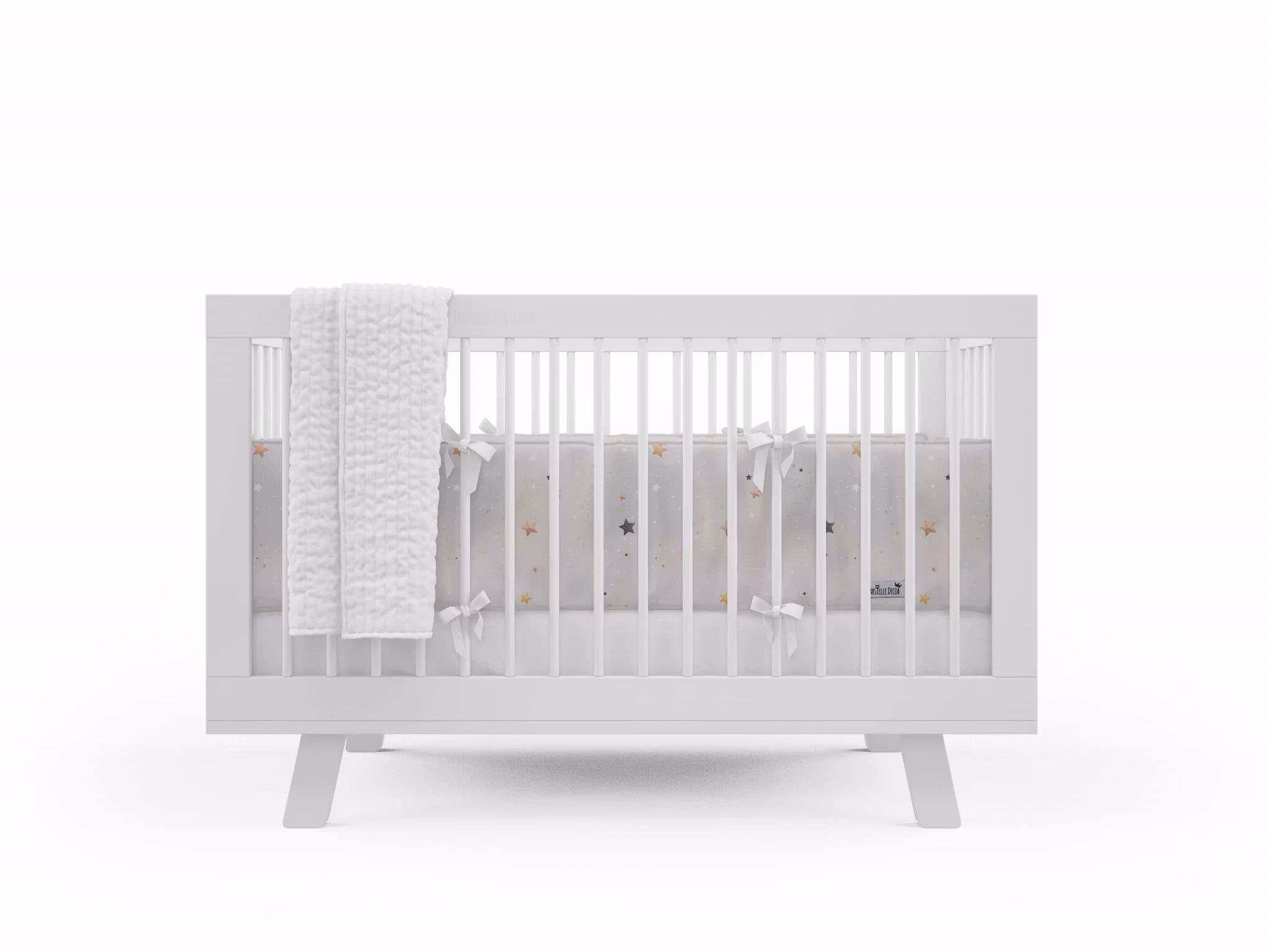 Fastgøres med søde bindebånd og er velegnet til vugger og tremmesenge med støttebræt med ribber.