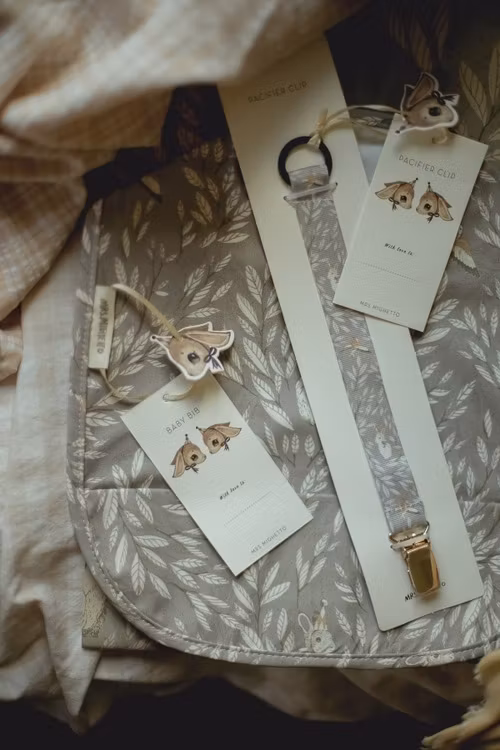 Hold din babys sut ren med denne fabelagtigt smukke sutteholder fra Mrs Mighetto. Perfekt som en lille gave!