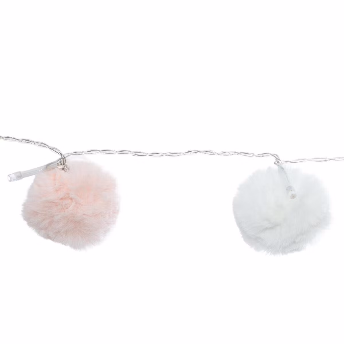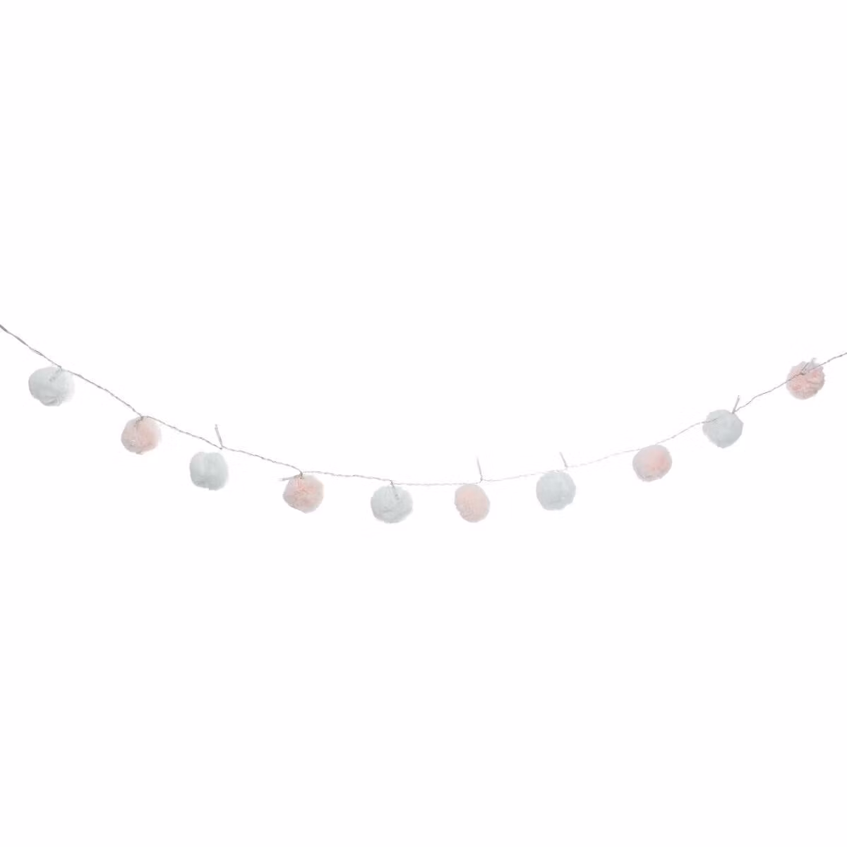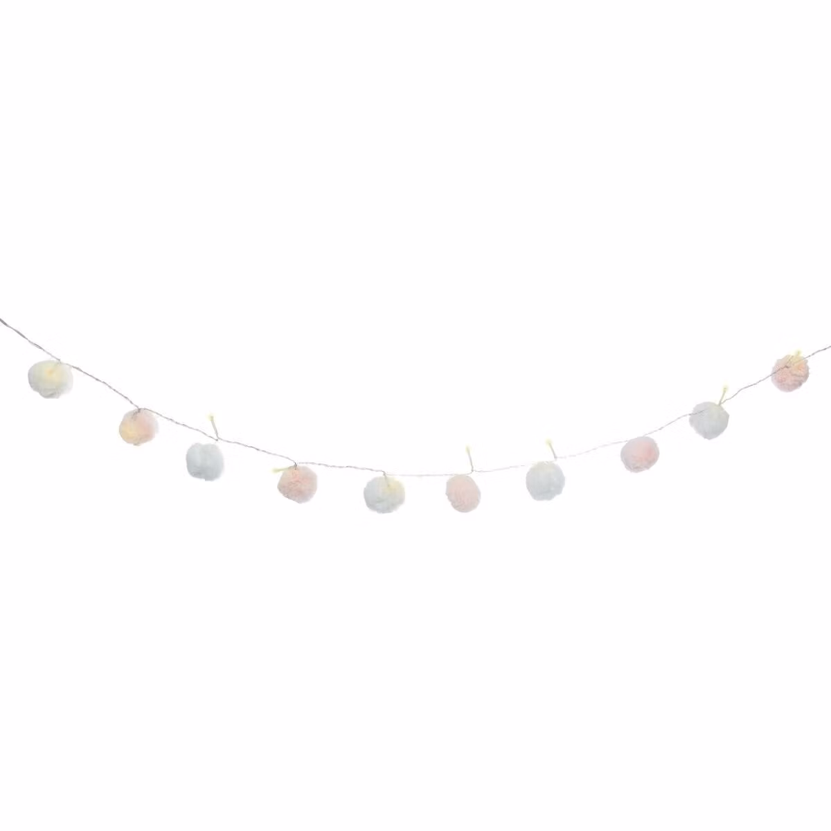 En meget smuk lyskæde med 10 pomponer. Den perfekte belysning til dit børneværelses interiør.