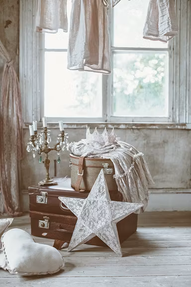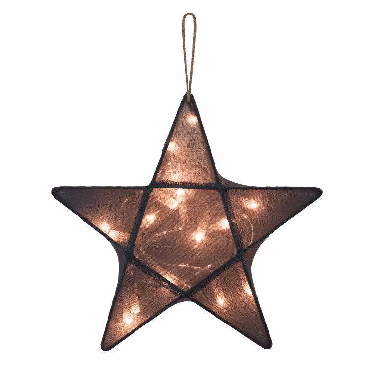 Natlampen er lavet af en metalstruktur i form af en stjerne, der er beklædt med bomuldsstof.