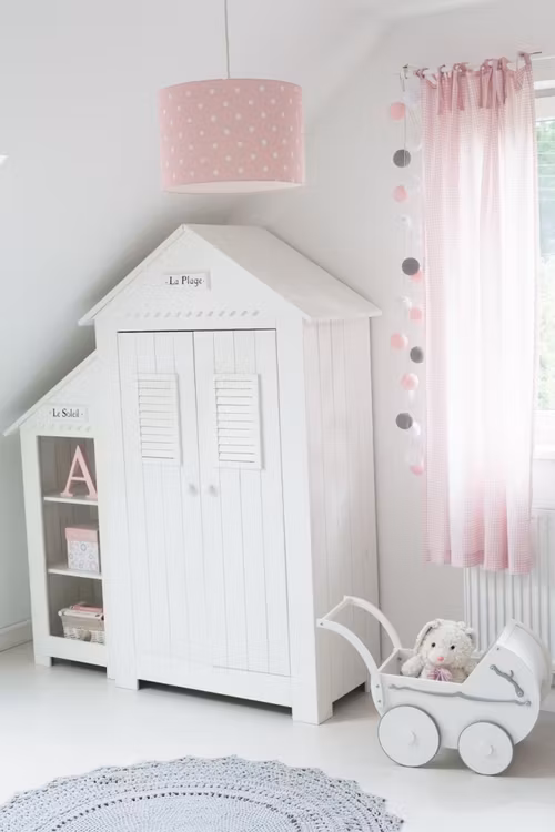 En skøn lyserød loftslampe til børneværelset med et motiv af søde små prikker.