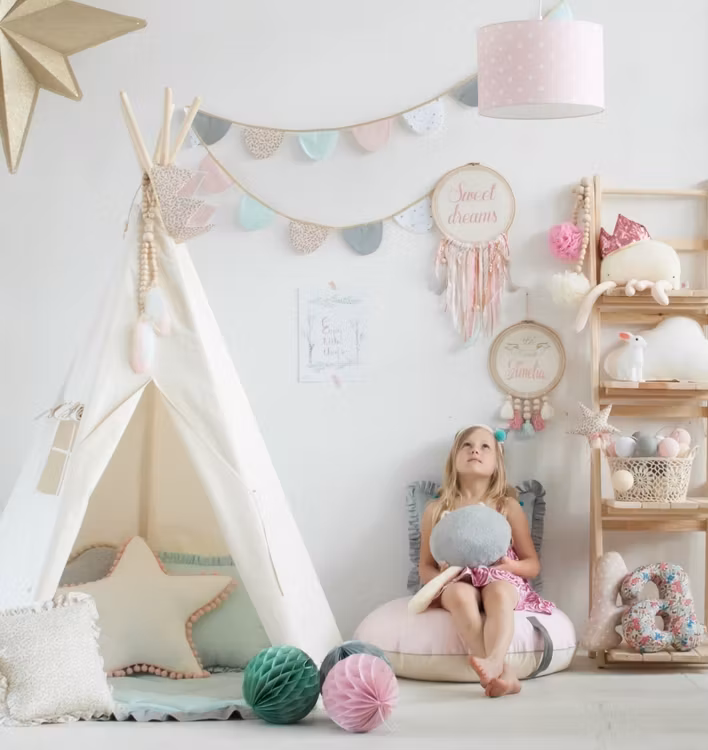 Loftslampen har flotte pastelfarver og vil give børneværelset en særlig charme.