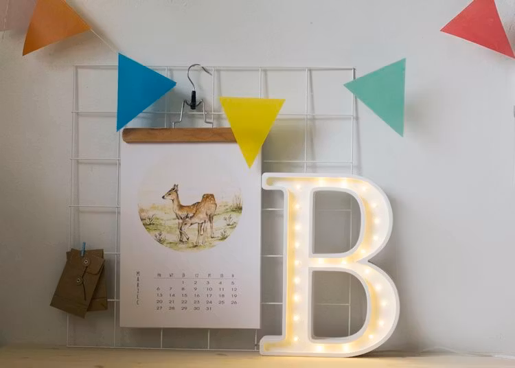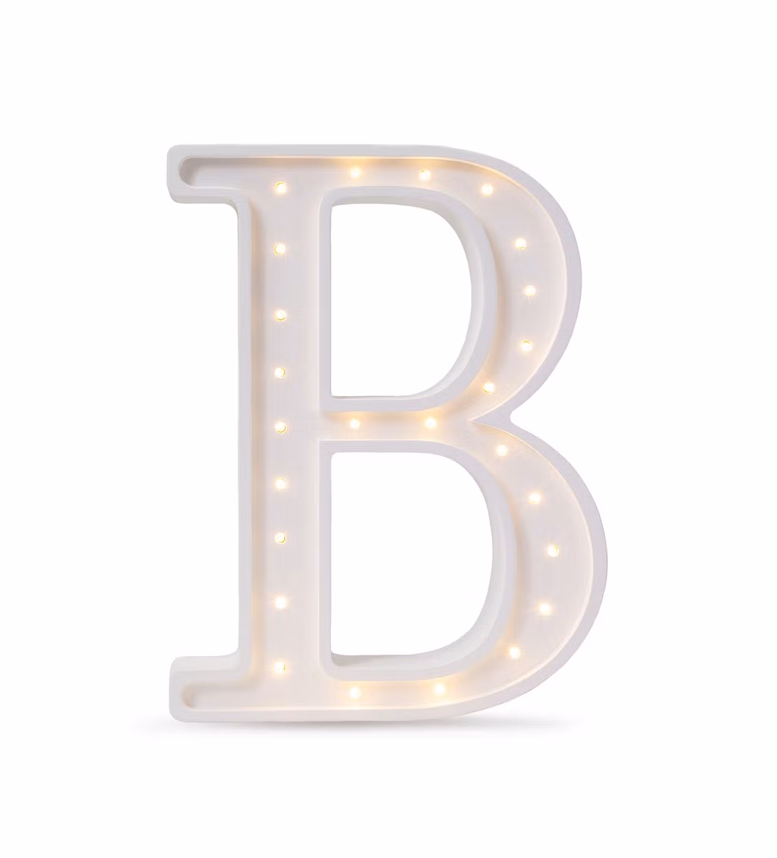 - Mål: Lampen fås i to størrelser, størrelse afhænger af bogstavet. Standard: cirka 39 cm x 27 cm x på 7,5 cm XL: cirka 58 cm x 45 cm x 7,5 dybde