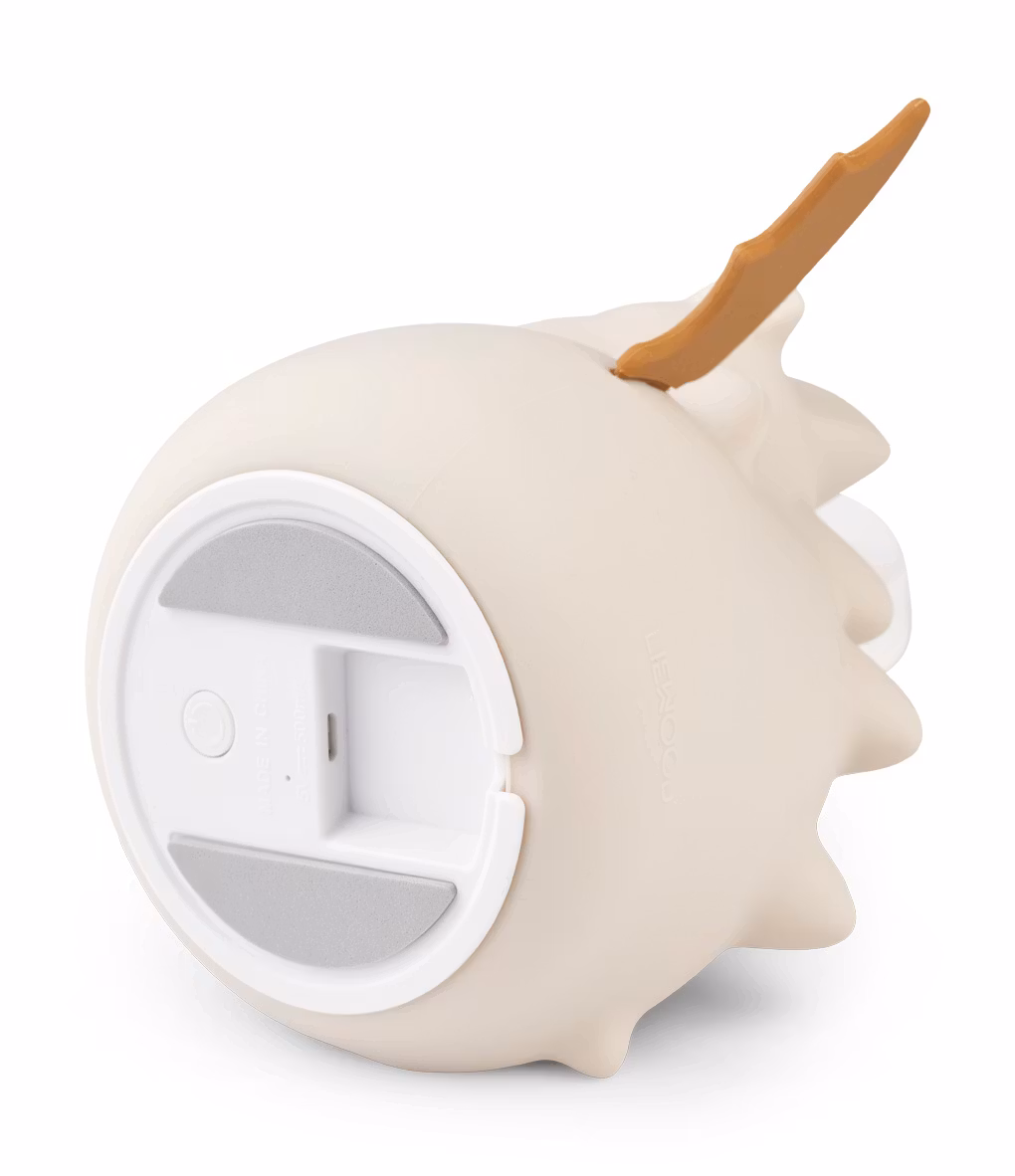 Lampen er lavet af silikone og er genopladelig, ledning medfølger. Natlampen er også værdsat for sit design, da den er smuk at se på, selv når den ikke er tændt.