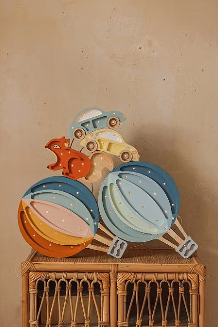 Fremstillet i træ (Fra bæredygtigt skovbrug) og håndmalet i børnesikre farver. Lampen laves i hånden og på bestilling, hvilket gør hver lampe helt unik.