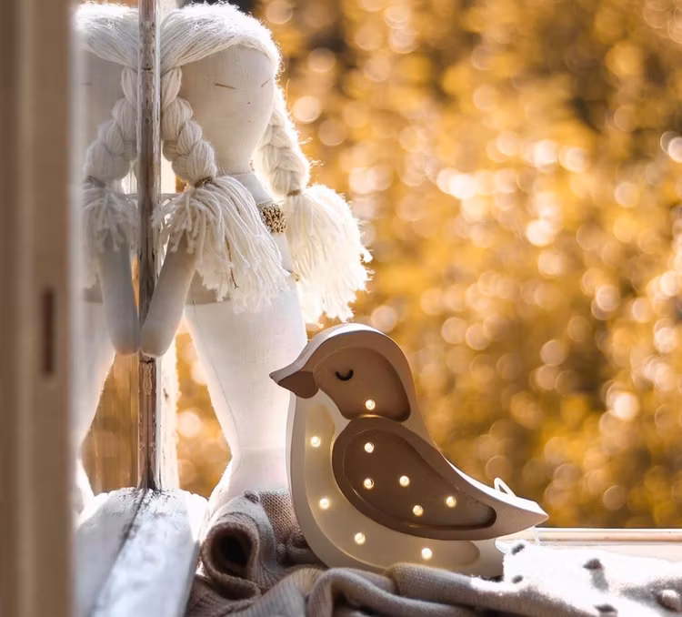 Little Lights, Lampe til børneværelset, Lille fugl coffee beige
