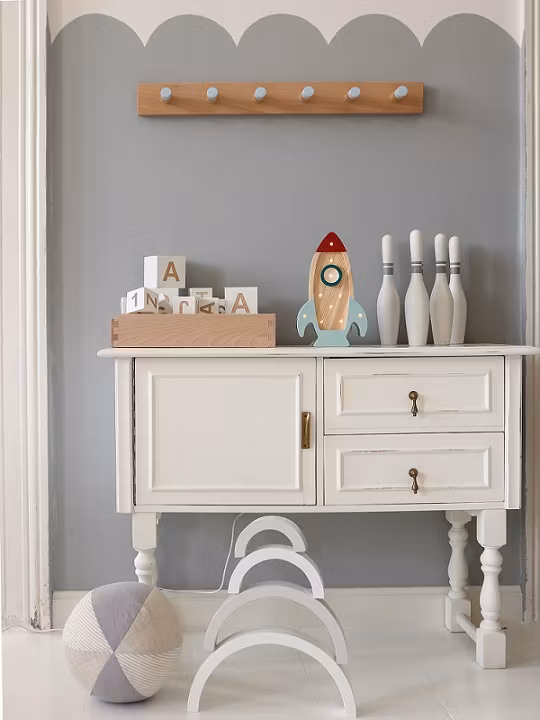 Fremstillet i træ (Fra bæredygtigt skovbrug) og håndmalet i børnesikre farver. Lampen laves i hånden og på bestilling, hvilket gør hver lampe helt unik.