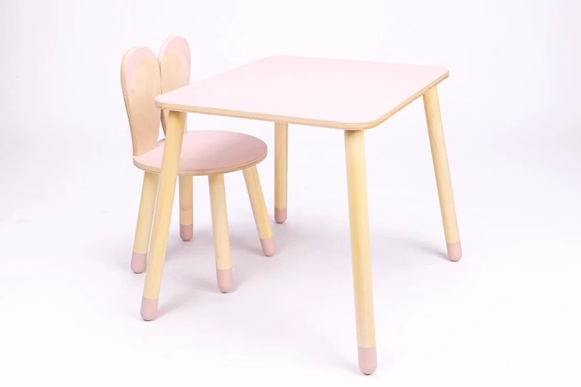 Møbelsæt stol med bord, kanin lyserød