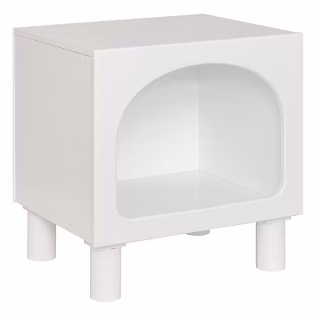 Med bløde former, der vil glæde både store og små! Den hvide finish passer nemt til alle stilarter og farver. Her er et sjovt opbevaringsrum, hvor dit barn kan have bøger, små legetøj eller krammedyr lige ved hånden om natten. På bordpladen kan du placere en sengelampe eller natlampe for ekstra hygge og funktion.