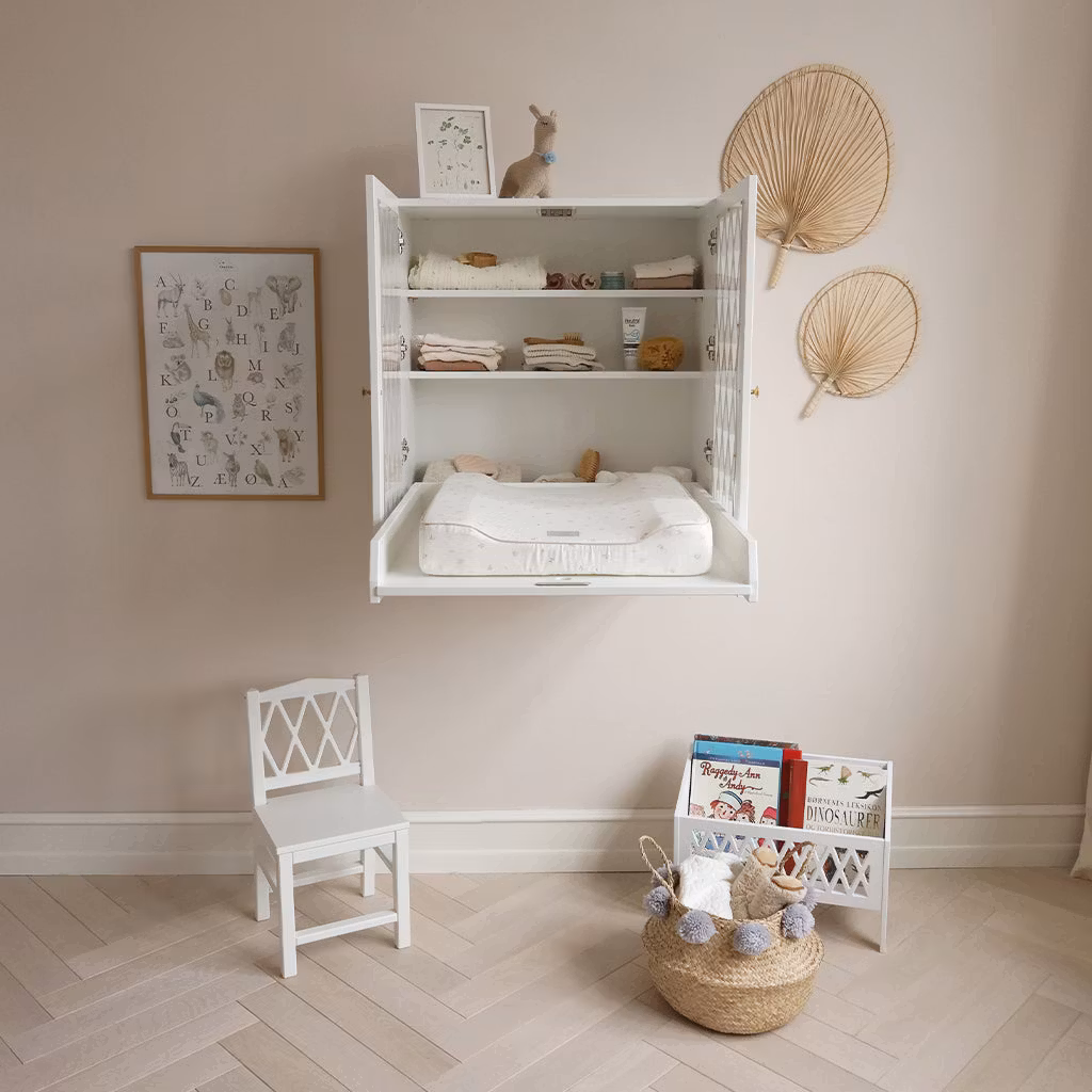 Et super flot og elegant væghængt puslebord til børneværelset fra danske Cam Cam. Utrolig flotte møbler, der vil bidrage meget til dit børneværelses indretning.