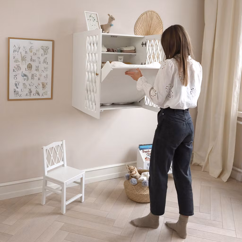 Et super flot og elegant væghængt puslebord til børneværelset fra danske Cam Cam. Utrolig flotte møbler, der vil bidrage meget til dit børneværelses indretning.