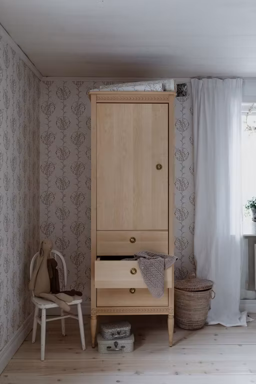 Et utroligt luksuriøst klædeskab i gustaviansk stil til børneværelset!