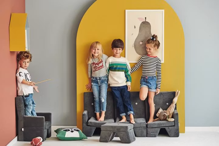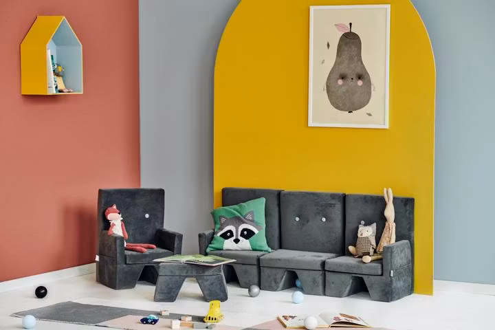 Disse fede skummøbler vil skabe masser af muligheder for, at du kan gøre dit børneværelse så godt, som du ønsker det. Her i form af et lækkert møbelsæt bestående af en sofa, en lænestol med to armlæn og en flot fodstøtte. Møbelsættet er opbygget af en praktisk serie af moduler, som nemt sættes sammen ved hjælp af praktisk velcro.