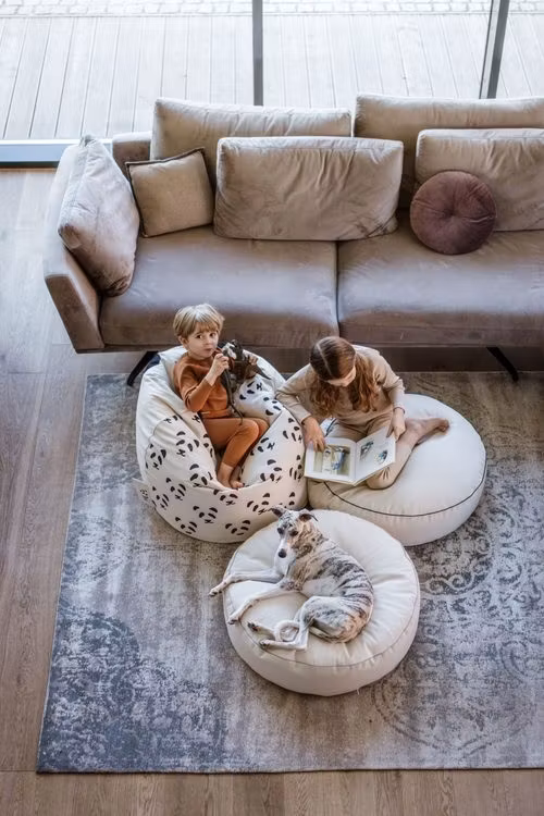 Bini er en meget behagelig puf, så dit barn kan sidde, ligge eller lege på den. Den er lavet af organisk bøjelig bomuld, som er meget blød.