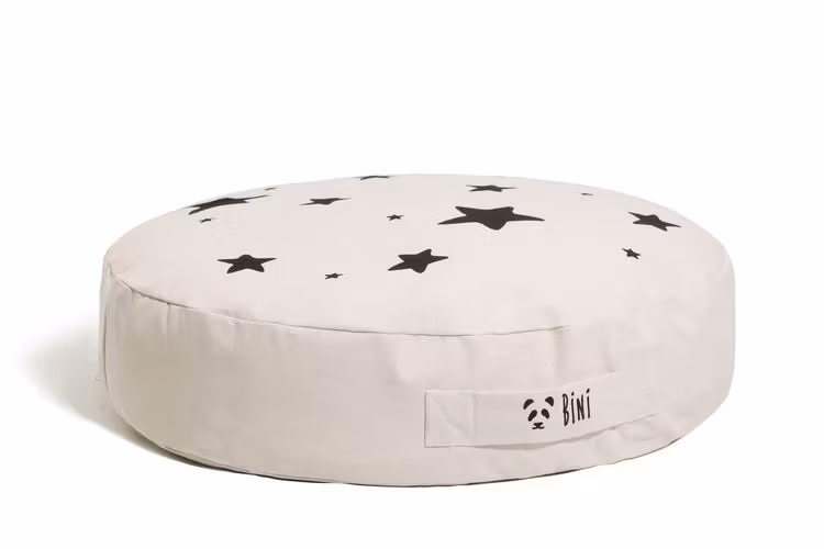 Bini er en meget behagelig sækkestol, så dit barn kan sidde, ligge eller lege på den. Den er lavet af organisk bøjelig bomuld, som er meget blød.