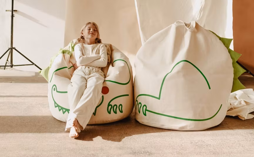 Bini er en meget behagelig sækkestol, så dit barn kan sidde, ligge eller lege på den. Den er lavet af organisk bøjelig bomuld, som er meget blød.