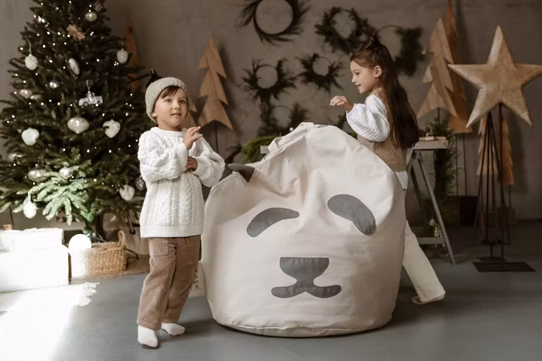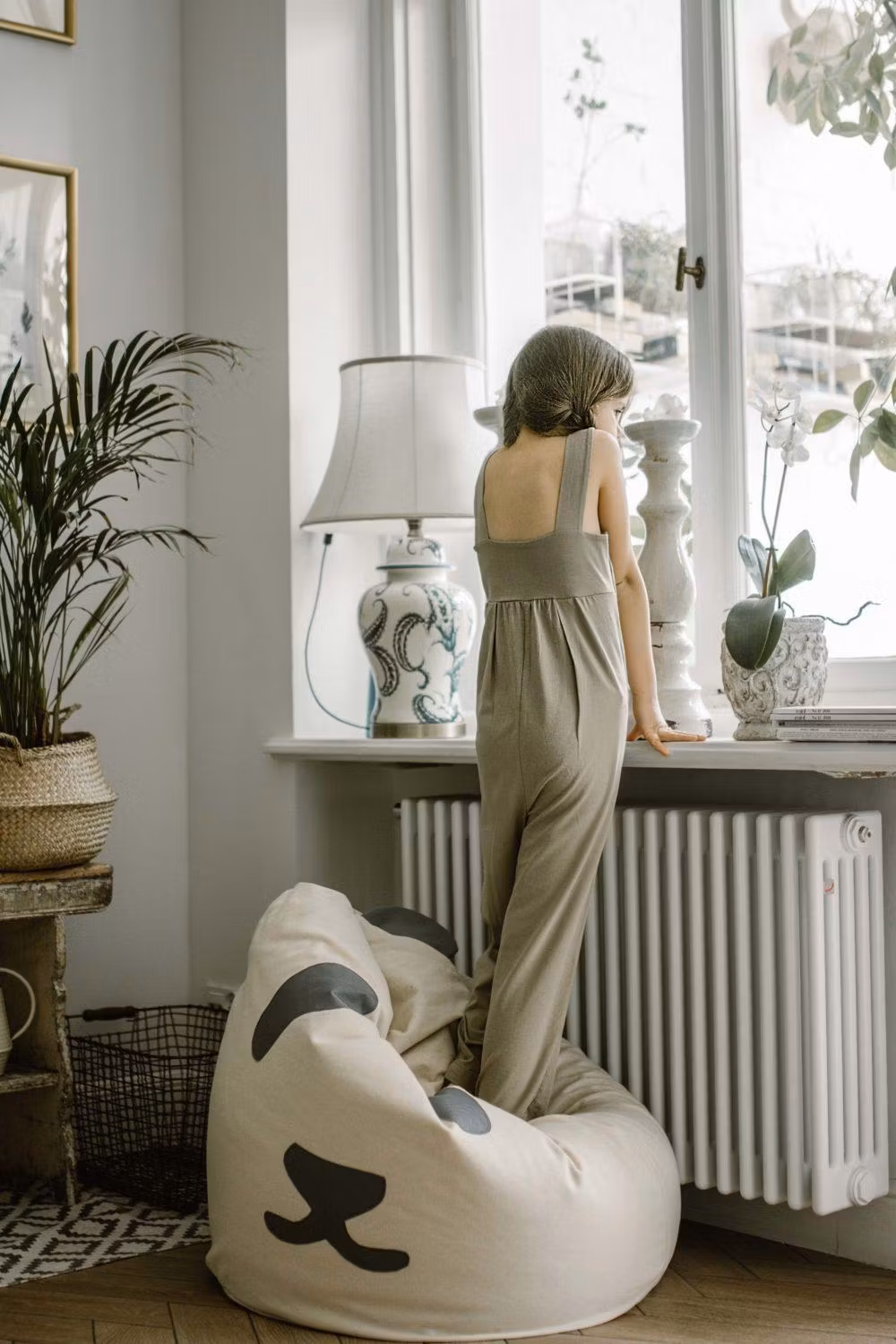 Bini er en meget behagelig sækkestol, så dit barn kan sidde, ligge eller lege på den. Den er lavet af organisk bøjelig bomuld, som er meget blød.