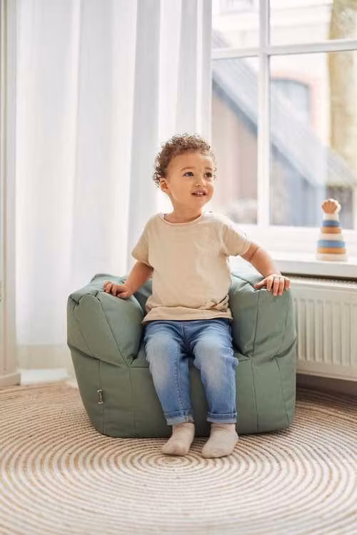 En blød bønnefyldt lænestol fra Jollein til de mindre børn.
