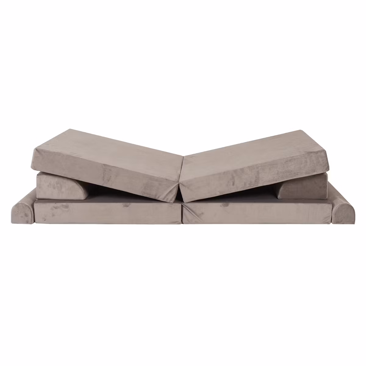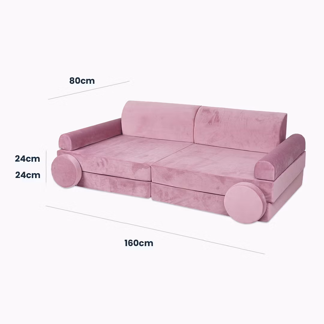 Møbelsættet består af en bygbar sofa med to små puder. Børnesofaen kan foldes ud for at skabe en stor seng, når dit barn vil tage en lur, eller når venner sover. Skiller man de store puf ad, får man pludselig to behagelige lænestole! Eller hvorfor ikke bygge en hyggelig hytte?
