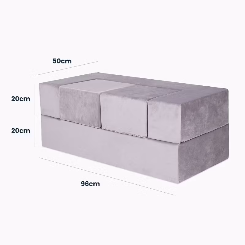 Møbelsættet består af en bygbar sofa med to små puf. Børnesofaen kan foldes ud for at skabe en seng, når dit barn vil tage en lur eller har venner over.