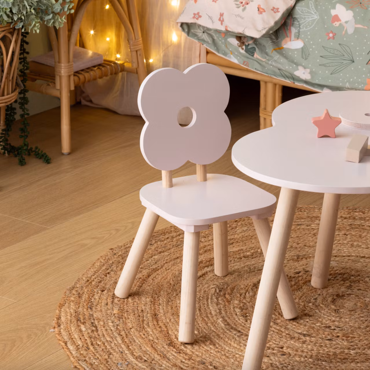 En sød og praktisk træstol. Takket være sine solide ben holder stolen til børns til tider vilde leg. Den passer perfekt i alle typer af børneværelser og vil give masser af gode stunder til barnet.