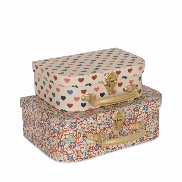 Skønne og flotte praktiske opbevaringsæsker fra danske Konges Sløjd i form af to flotte kufferter. Perfekt til opbevaring af dit barns småting, såsom kuglepenne eller samleobjekter.