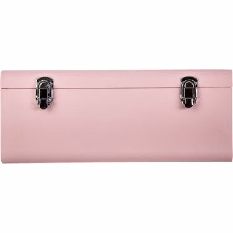 To vidunderligt flotte lyserøde metalkufferter til børneværelset.