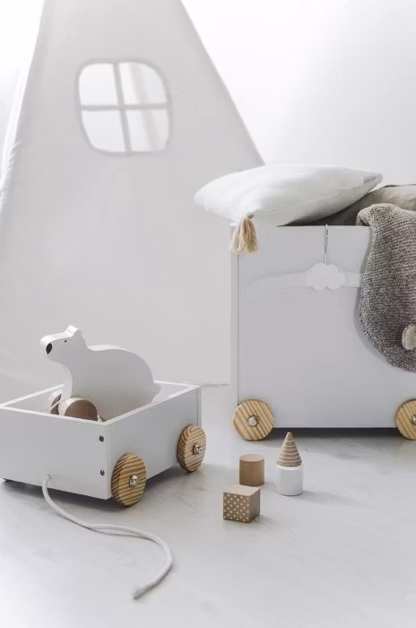 En elegant og praktisk legetøjskasse, der giver dit barn mulighed for at flytte rundt på deres yndlingslegetøj.