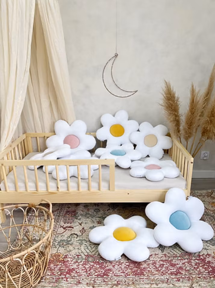 En meget fin og hyggelig pude til børneværelset i form af en blomst.