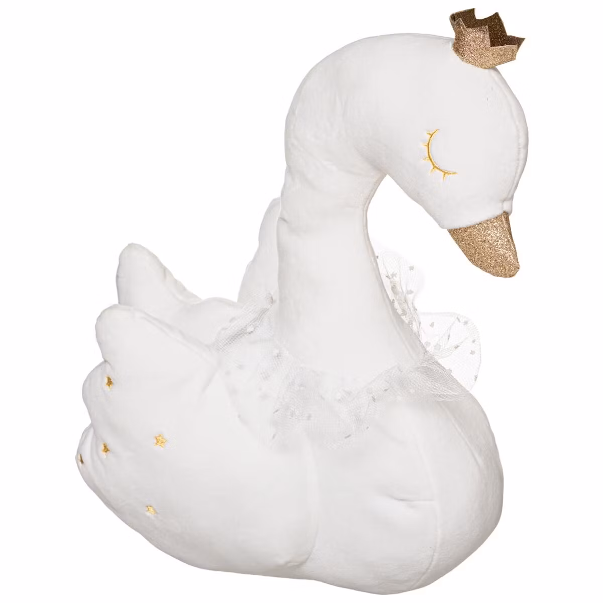 Fantastisk smuk pude i form af en svane med glitrende krone og næb.