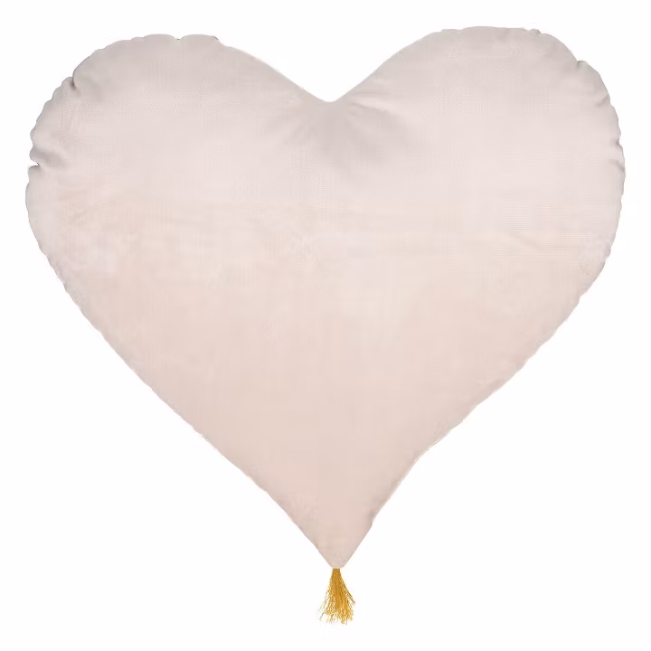 En hjerteformet pude i smukt stof med gyldne stjerner og en kvast!