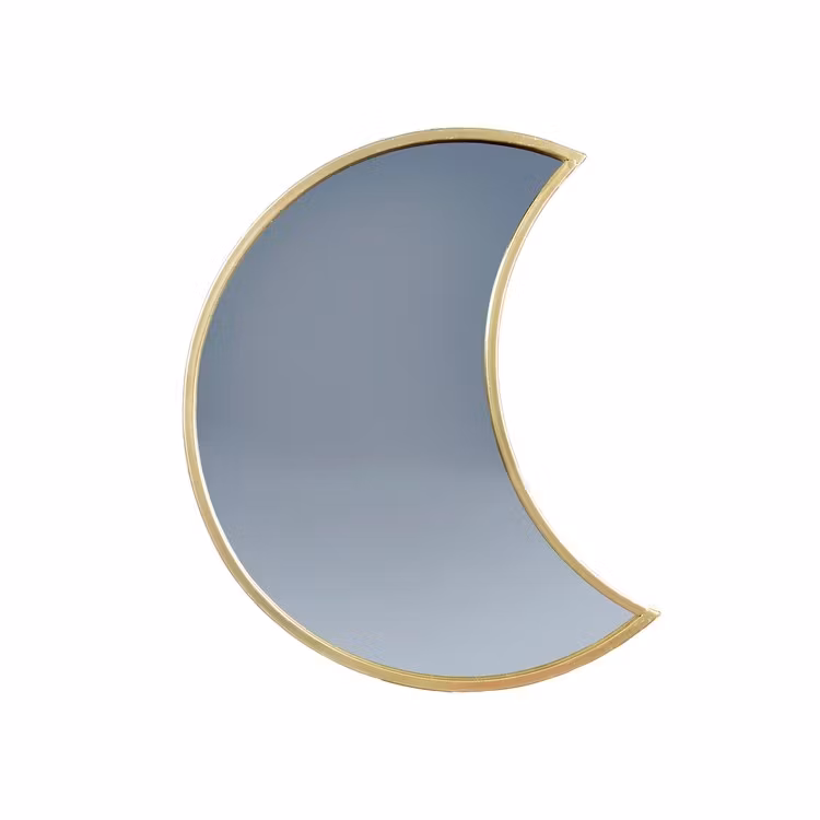 Superfint spejl i form af en måne med diskrete, gyldne kanter i metal. En fantastisk dekoration til børneværelset og en fin indretningsdetalje, som du vil elske.