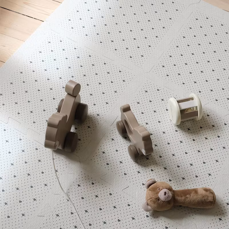 En vidunderlig, tyk legetæppe i form af 9 brikker, som man kan sammensætte præcis, som man vil – hvilket skaber en unik fleksibilitet. Alt fra at skabe en hyggelig legekrog til at bygge en sej vej til at køre biler på. Kun barnets og forældrenes fantasi sætter grænserne.
