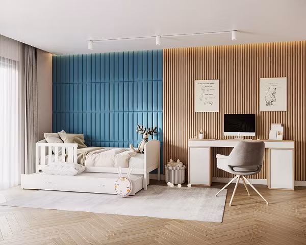 Passer perfekt på børneværelset som i resten af hjemmet. Kan placeres både lodret og vandret for at skabe en smuk baggrundsvæg, sengegavl eller en helt unik vægdekoration. Panelerne fastgøres nemt til væggen ved hjælp af montagelim.