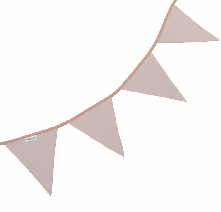 I alt indeholder den 14 vimpler af stof og er hele 3,5 meter lang. Denne vimpel passer på børneværelset, eller udenfor i legehuset eller hvorfor ikke når det er tid til fødselsdagsfest.