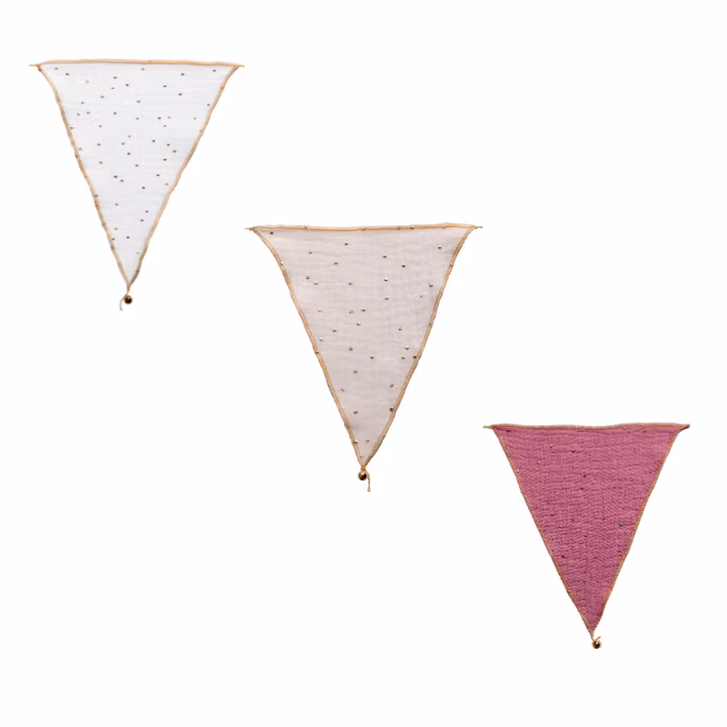 Denne smukke vimpelløkke med 13 yndige stofvimpler er den perfekte detalje til indretningen af dit børneværelse. Passer perfekt på børneværelset, eller udenfor i legehuset eller hvorfor ikke når det er tid til fødselsdagsfest.