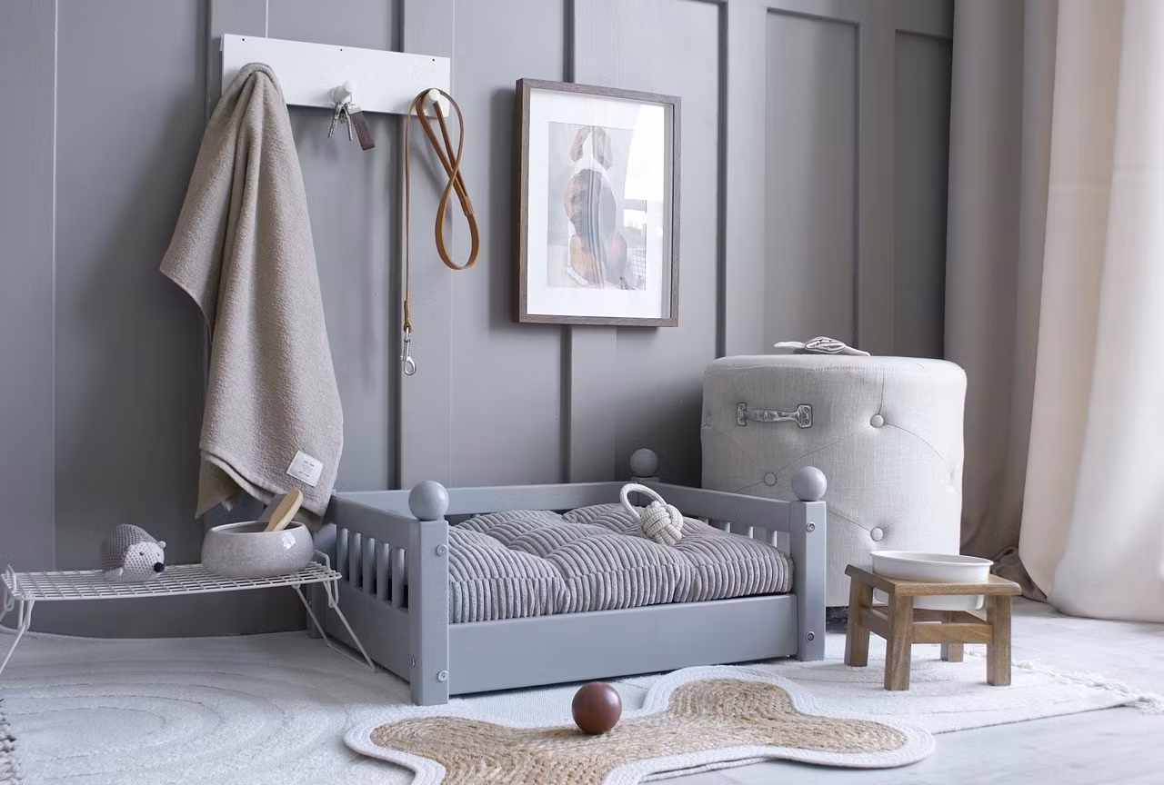 Hundeseng/hundekurv "Taco" i grå finish er den perfekte kombination af skandinavisk æstetik og funktionalitet.