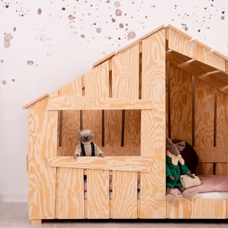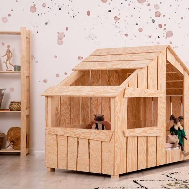 Du får en optimal kombination af hytte om dagen og seng at sove om aftenen i form af denne smukke husseng Bella. Velegnet til alle små, der elsker at lege gemmeleg eller drømmer om en træhytte.