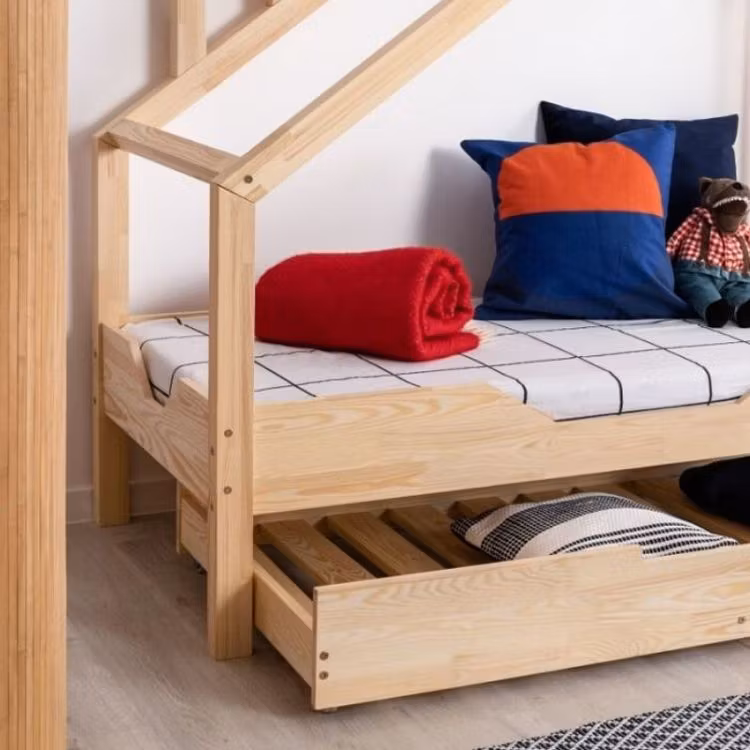 Det skrå loft giver ikke kun en kabineagtig silhuet, det gør også disse senge nemme at møblere selv i rum med skrålofter!