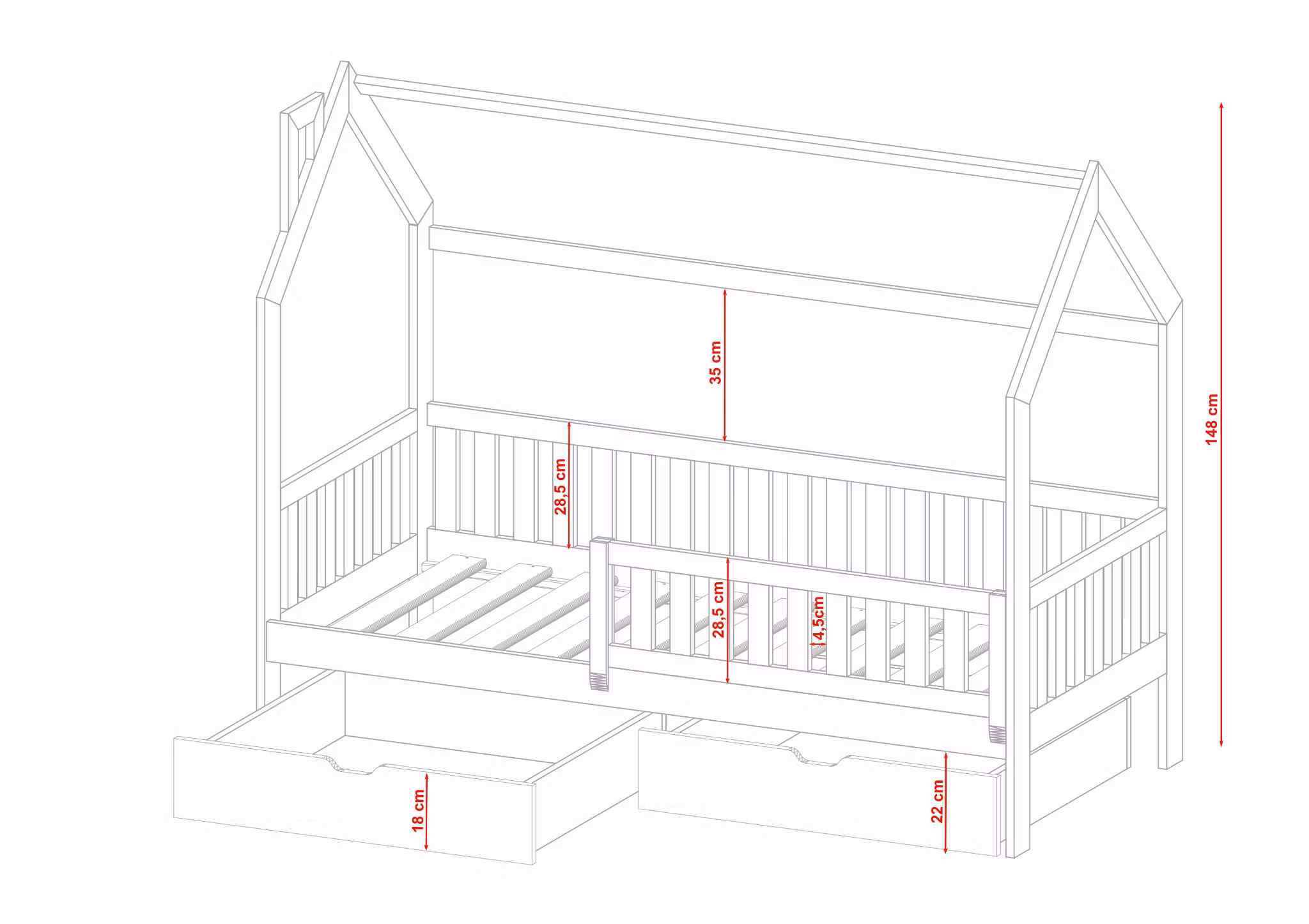 En stabil og solid børneseng i tidløst skandinavisk design, som ikke kun er et hyggeligt sted at sove, men også en pæn indretningsdetalje på børneværelset!