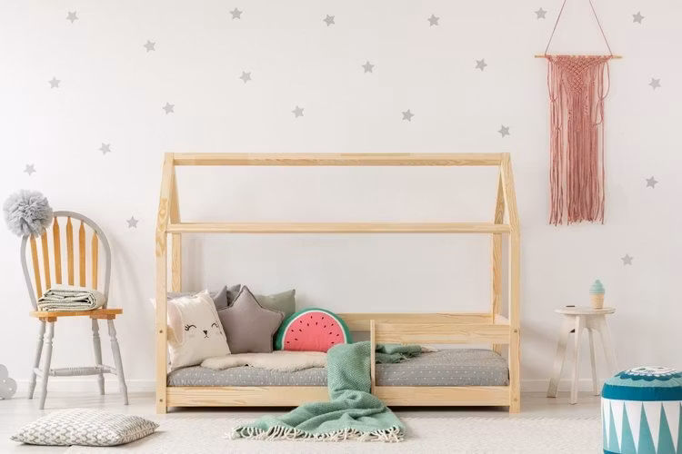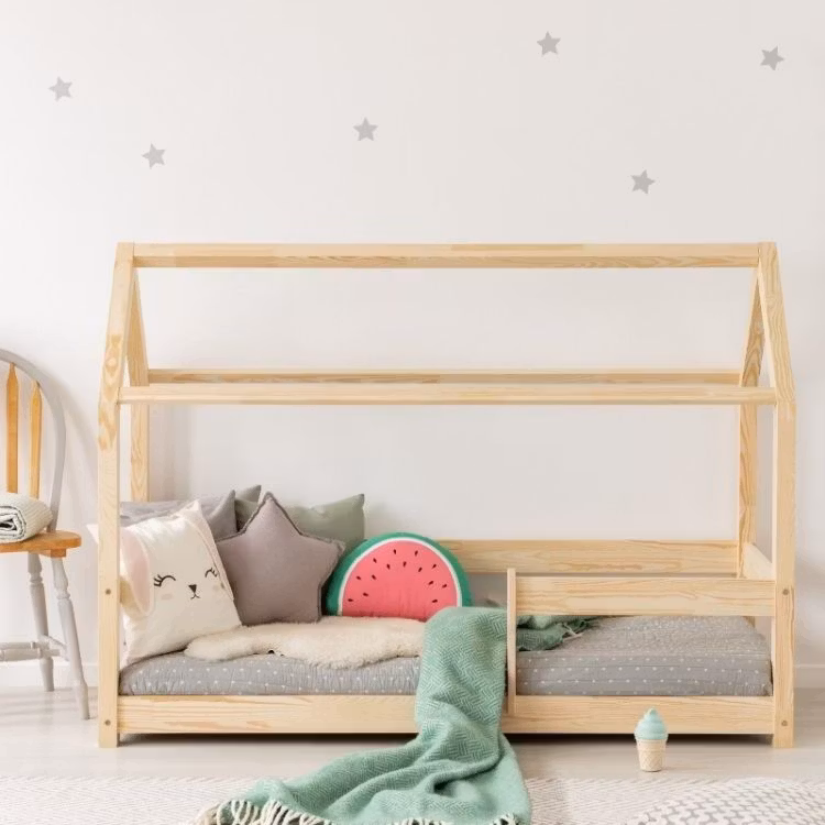 På husets seng kan du hænge flotte vimpler, lyssnor eller hvorfor ikke en flot sengehimmel? Uanset hvad ved vi, at dit barn vil elske det, og forhåbentlig går natten lidt lettere...