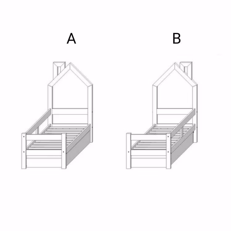 - Opbevaringsboks med sovefunktion (ekstra lamelbund medfølger) (Madrasmål til ekstra seng: maksimal tykkelse 9 cm og 10 cm kortere end sengens længde. Eksempel: Til seng 80x160 = 1 madras 80x150 cm)