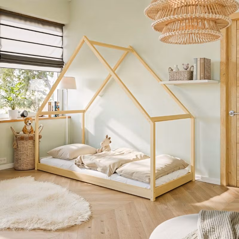 En seng i skandinavisk stilren stil, der passer overalt og i alle typer af rum. Du kan nemt dekorere den med fine flag eller lyskæder for at få mere effekt.