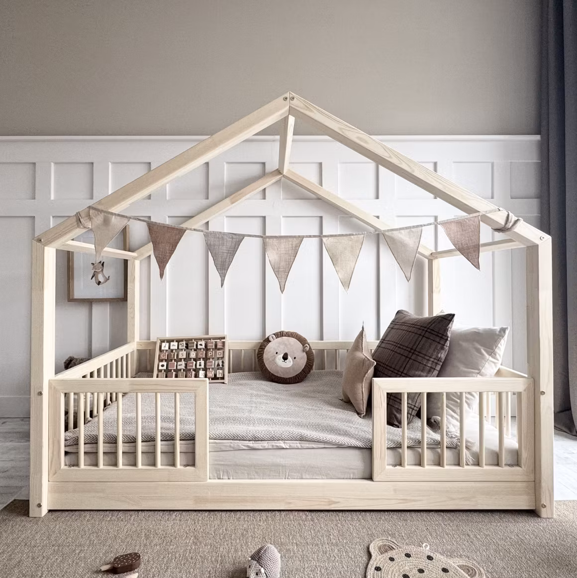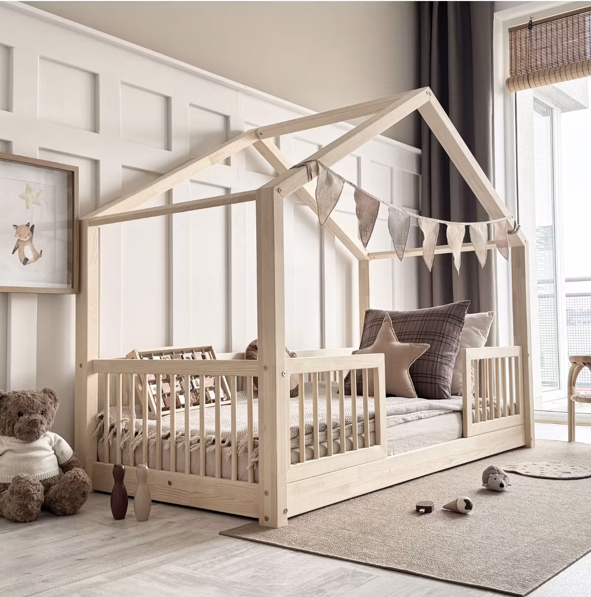 Denne hyggelige og stilfulde husseng til børn er det perfekte valg for at skabe en tryg og inspirerende soveplads til dit barn. Fremstillet af holdbart lamineret træ, giver sengen et naturligt og tidløst udseende, der passer ind i ethvert børneværelse.